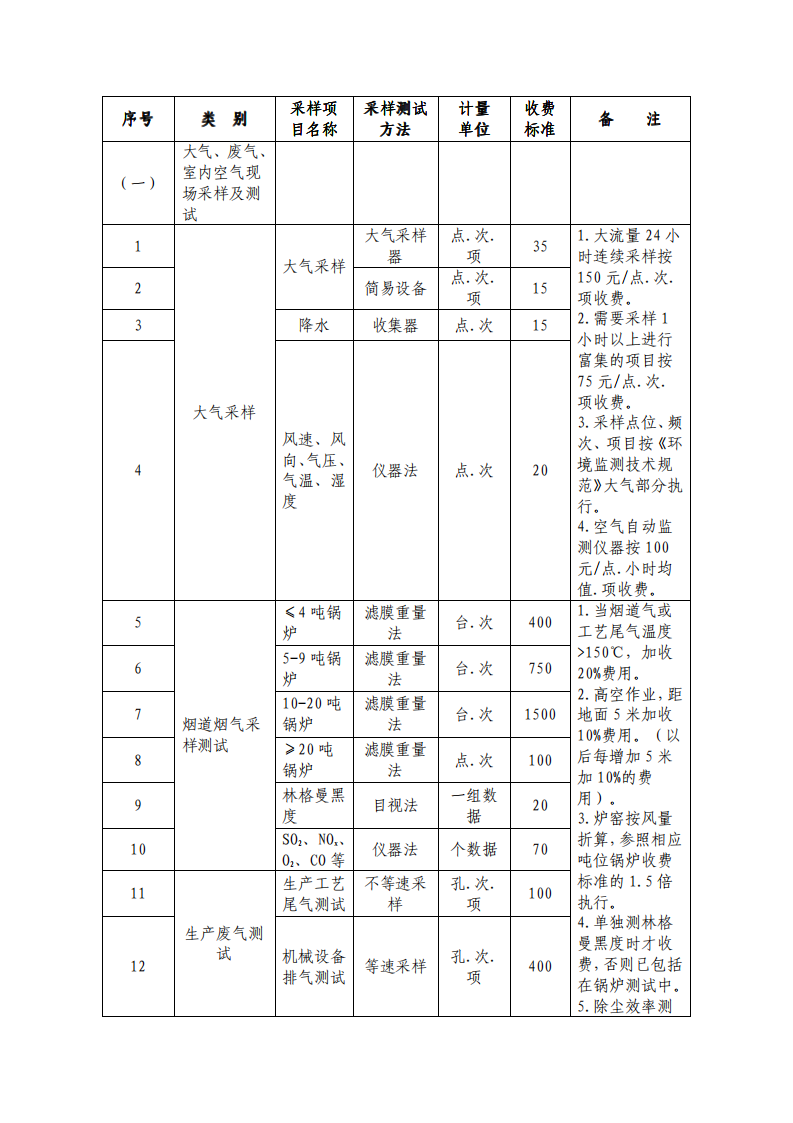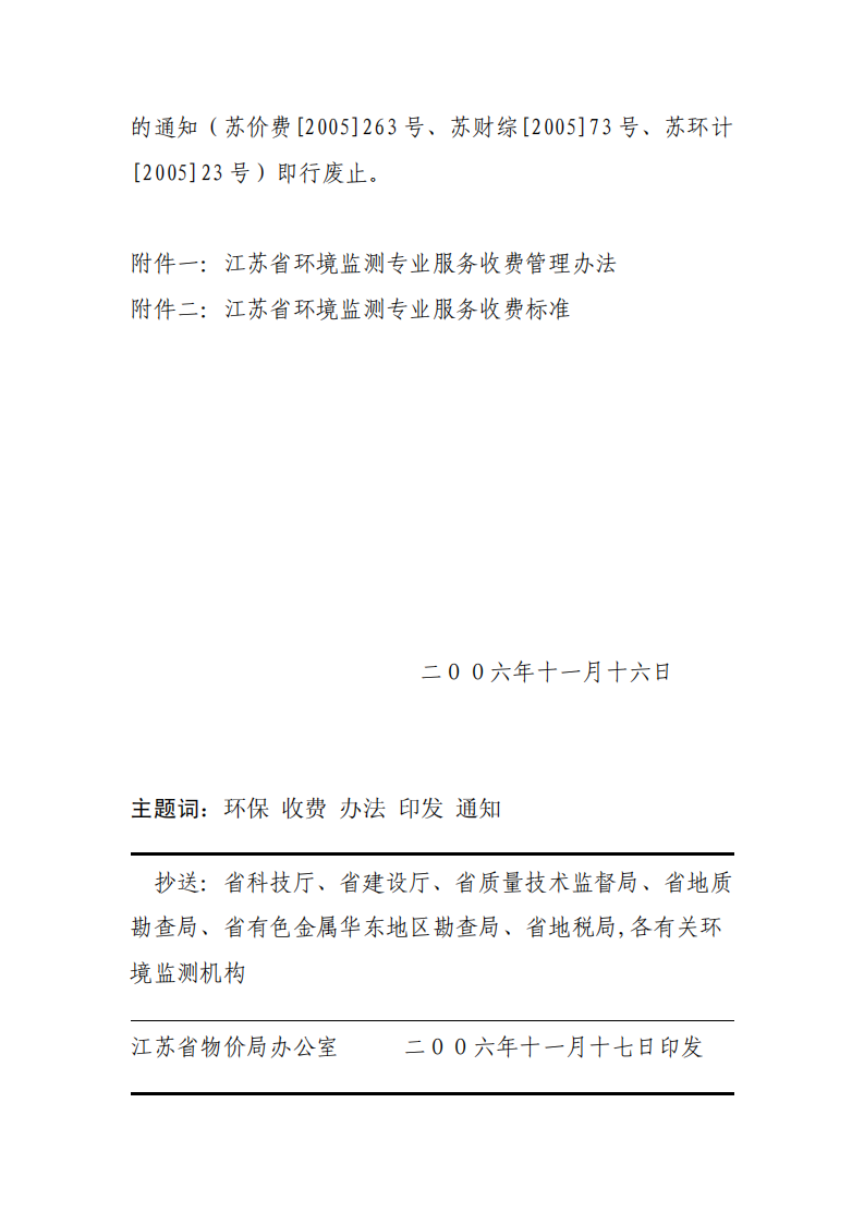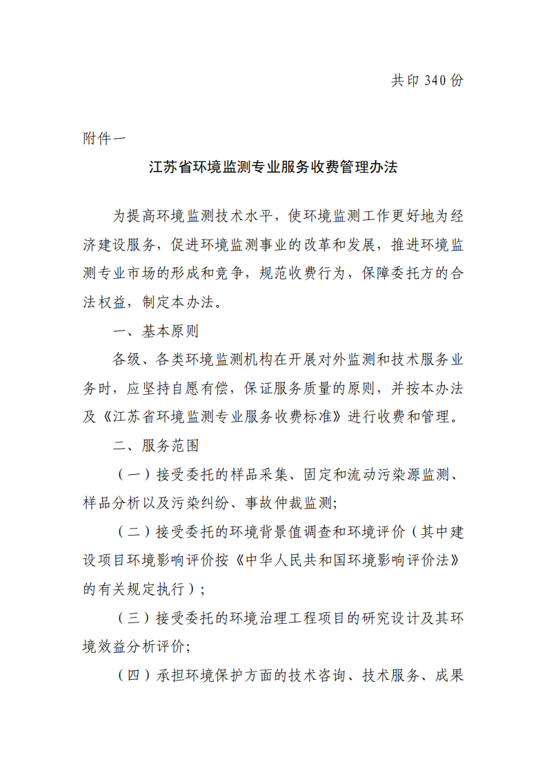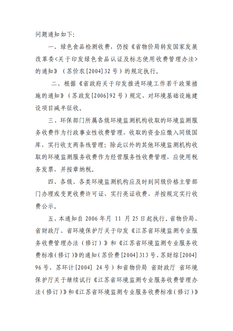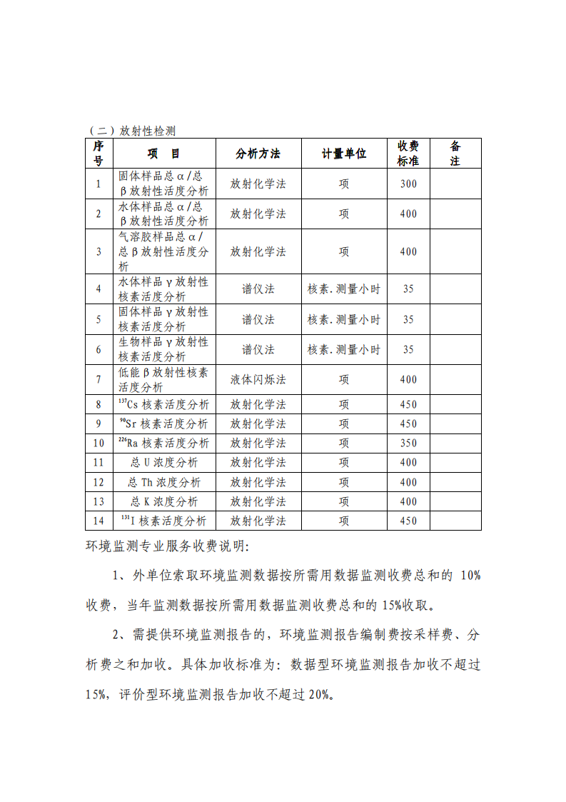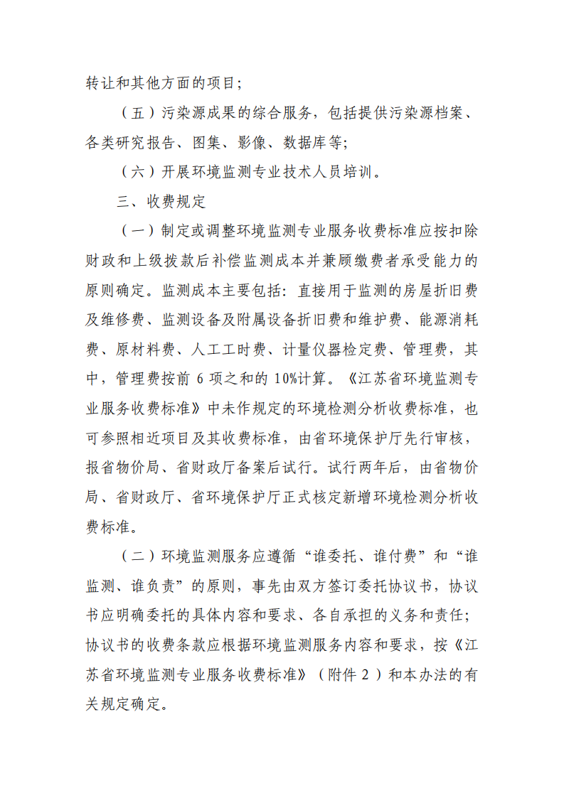 按蘇價費〔2006〕397 號中《江蘇省環境監測專業服務收費標準》指導價的4.0-6.0折計算;車輛、人員費另行計算。